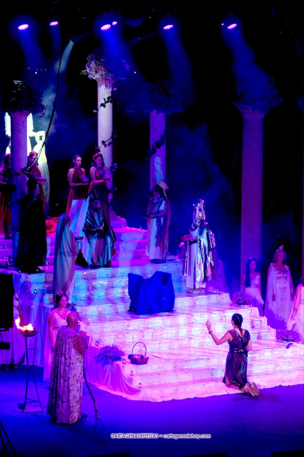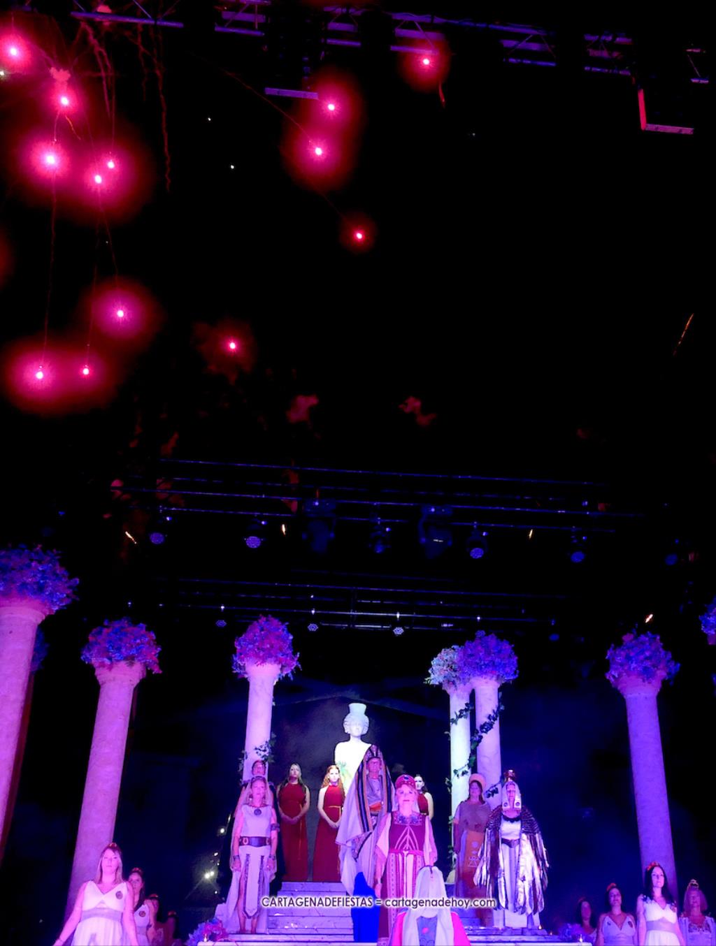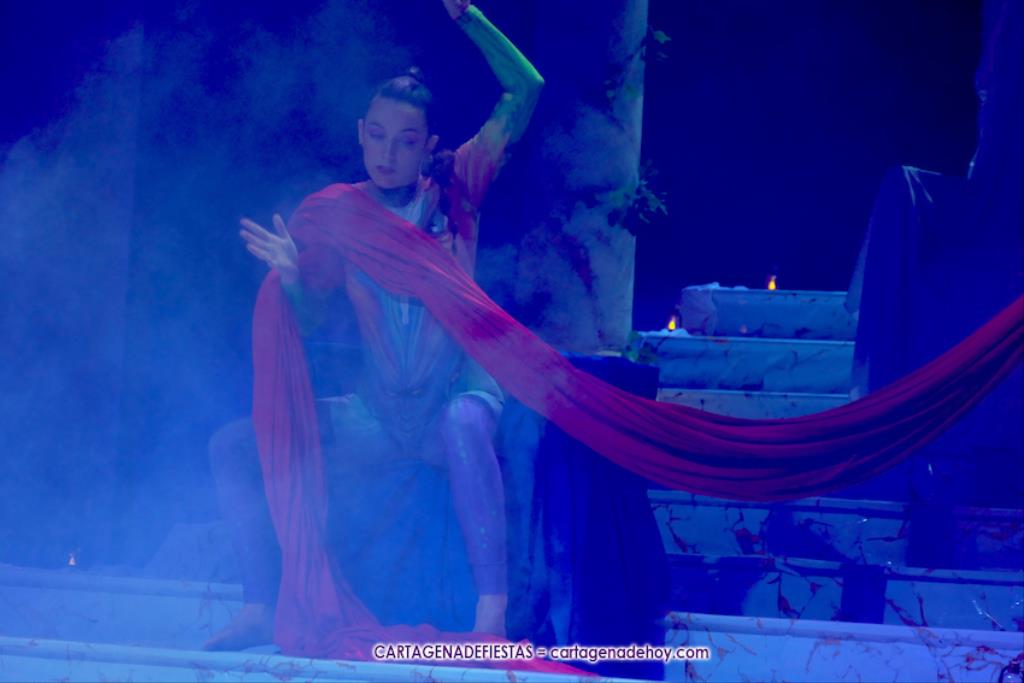 Una elástica danzarina rodeada por las sacerdotisas de Baal-Hammon son las primeras escenas que llegan a un completado graderío del auditorio más elevado de ‘La Trimilenaria’, el lugar donde más luce esta obra de apenas cuarenta minutos que ha vuelto a dirigir Adrián Quiñones.