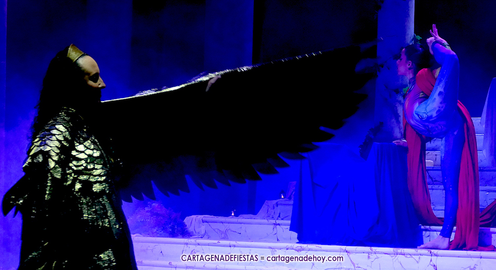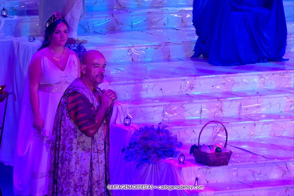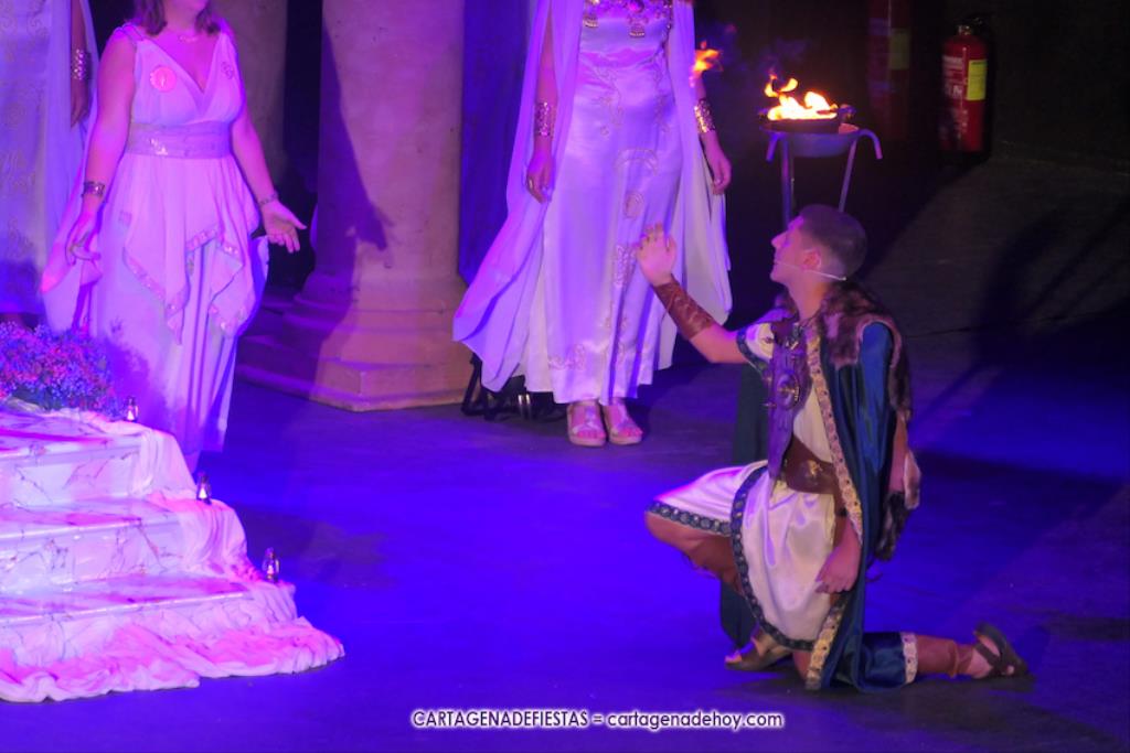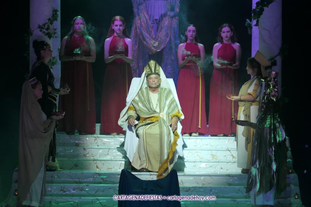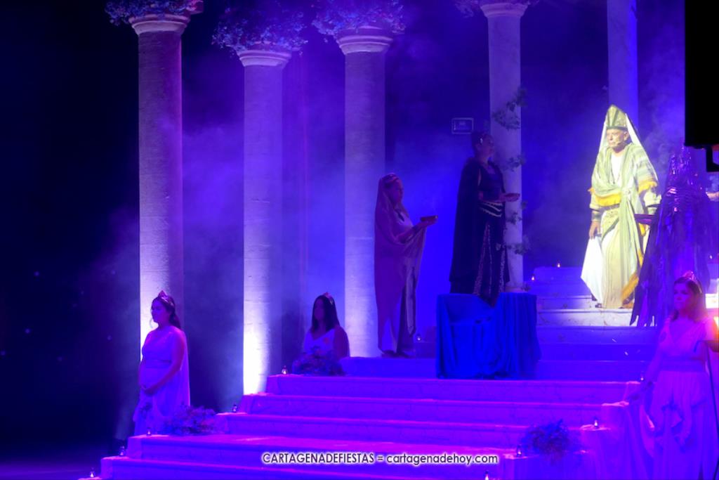 La pitonisa le desvelará la derrota de Aníbal, pero que lo volverá a ver en otra ciudad. También que tendrán un hijo, que no sucederá a su padre, y que ‘las águilas’ derrotarán (“con engaños”) a las fuerzas cartaginesas, pero no será el final, pues con el año de los años la ciudad resurgirá y las historias de los fundadores de Qart-Hadast volverán a la ciudad de las cinco colinas, Cartagena. Las coloridas explosiones en el cielo, aderezadas con el sonido de los aplausos, pondrá el fin.