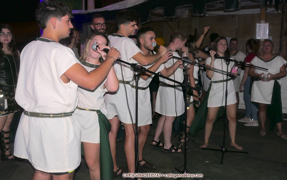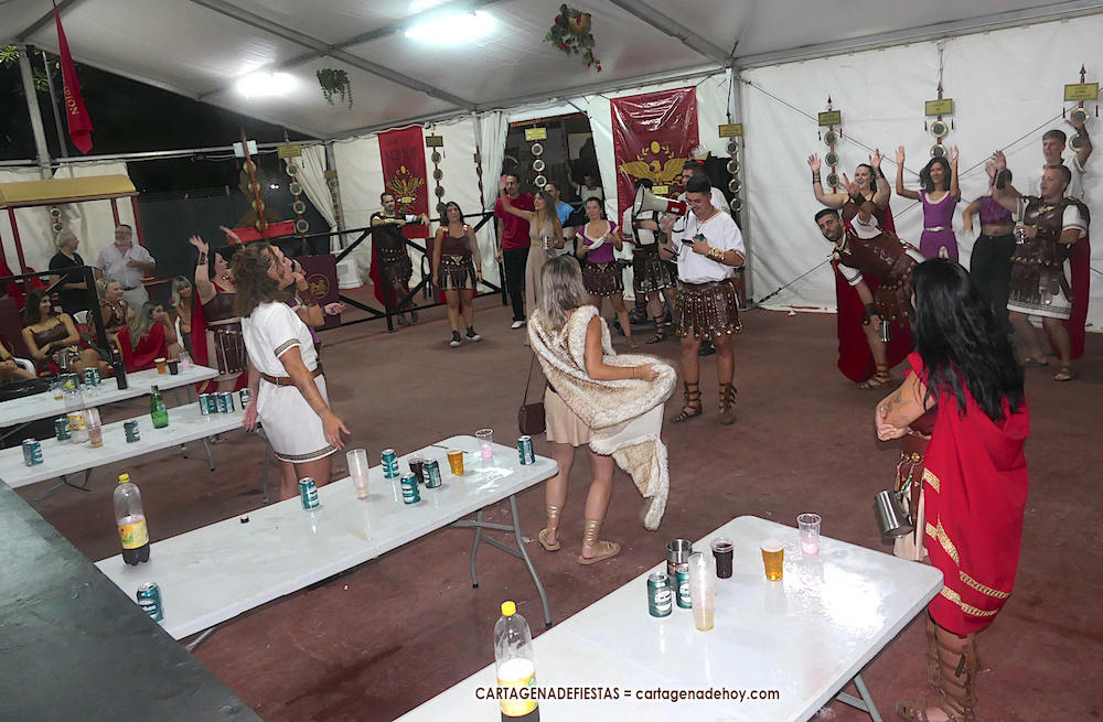 Las primeras noches de esta semana en el campamento de Carthagineses y Romanos ofrecen una sucesión de competiciones en los recintos de tropas y legiones con olimpiadas y concursos, desde el 'cazabolas' y el 'lanzamiento de hueso chochil' hasta la 'sokatira' y los karaokes.