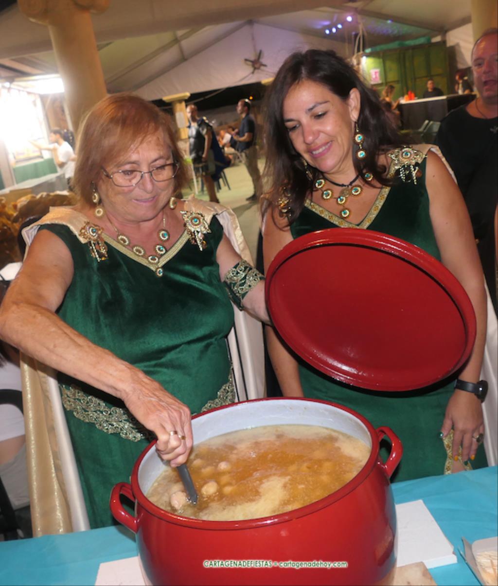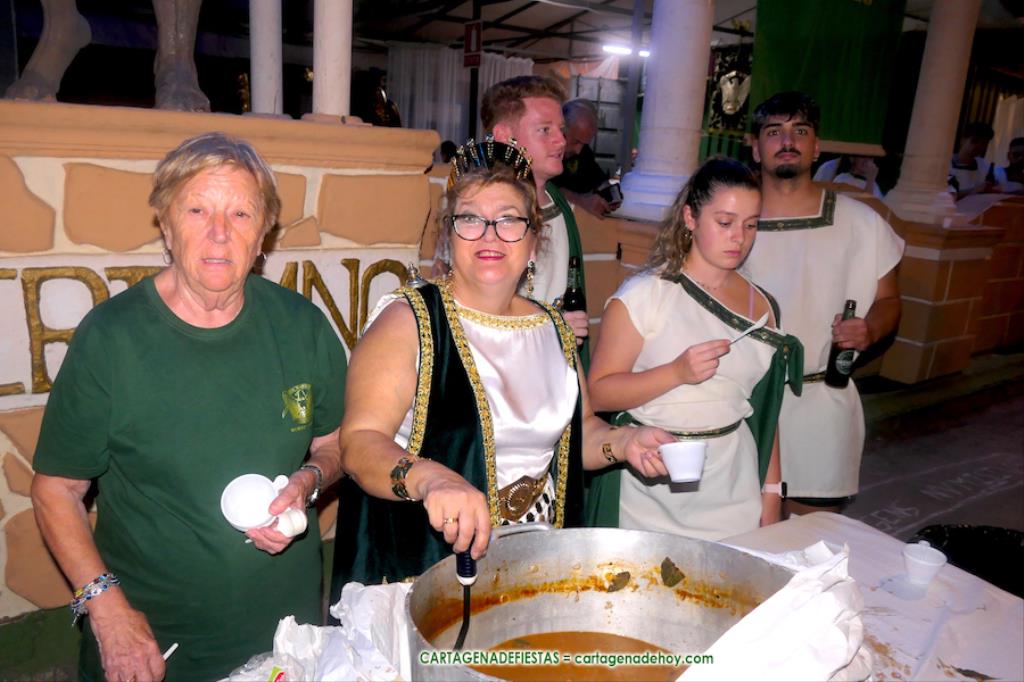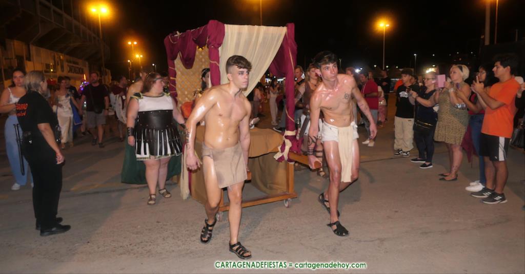 La dona iba tumbada, como es tradicional, siendo llevada por esclavos. Nada más entrar, Vigiles le ofrecía un tazón de sus pelotas con caldo. En ese momento se habilitada el primero de los 25 puestos, para los restantes hacerlo conforme avanzaba la romana.