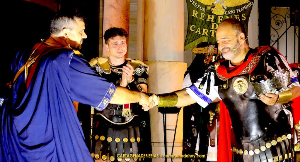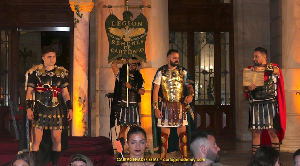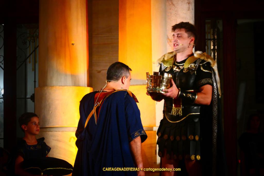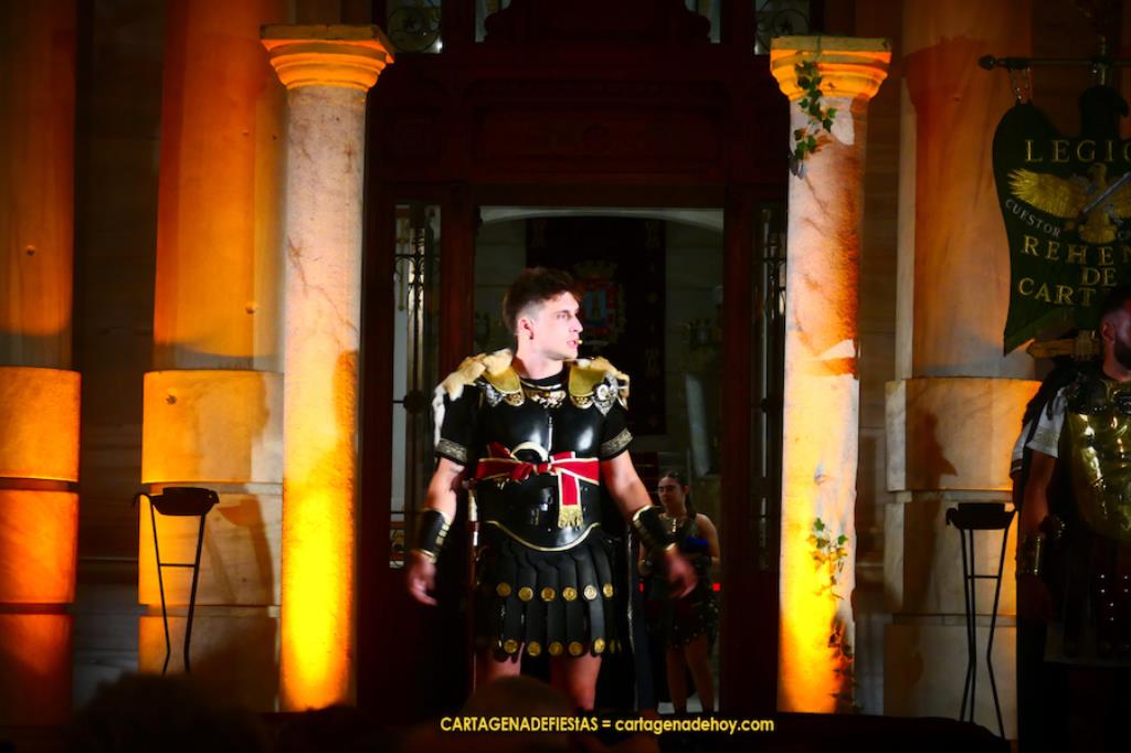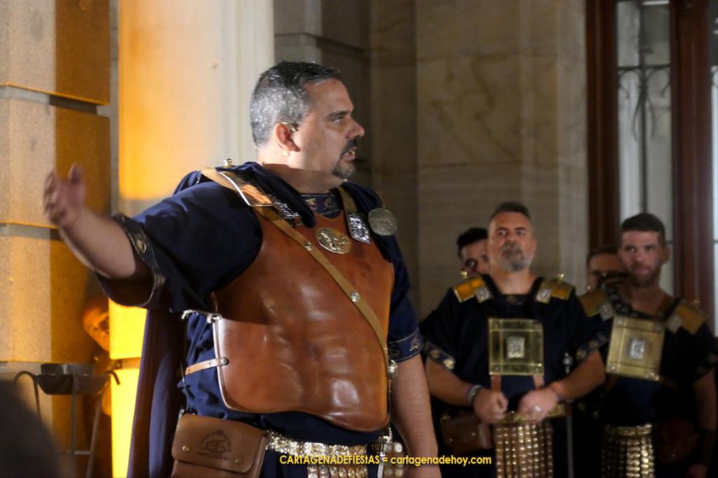 Después, desde el balcón del Palacio Consistorial, el propetor dio lectura al edicto que imponía la Ley de Roma en la ciudad, cuyos habitantes deberían asumir su lengua, usos y costumbres. También se anuncia la reconstrucción de la ciudad y la reordenación de las explotaciones de la sierra minera, además de ordenare a las legiones que desfilen para que todos conozcan su triunfo. ¡Sea Cartagena romana!