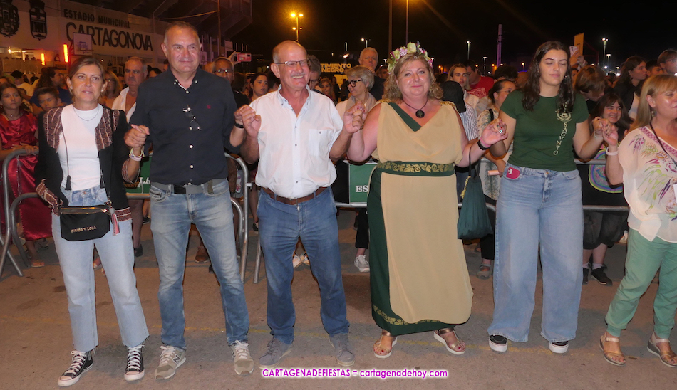 Hace unos años, de forma improvisada, festeros y demás espectadores del acto de clausura de las Fiestas de Carthagineses y Romanos se cogieron de las manos y comenzaron a moverse al son de la música de la composición oficial de esta tierra. En las últimas ediciones lo que resultó una bonita iniciativa se está perdiendo y anoche fueron muy pocos los que la llevaron a cabo.