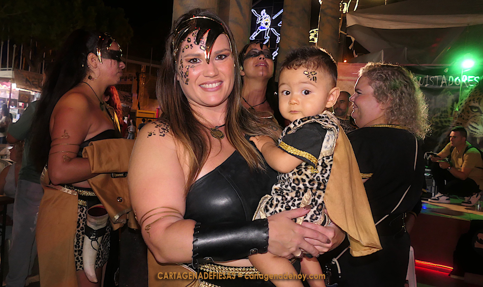 Una guerrera de Conquistadores de Iberia con su hijo de un año de edad