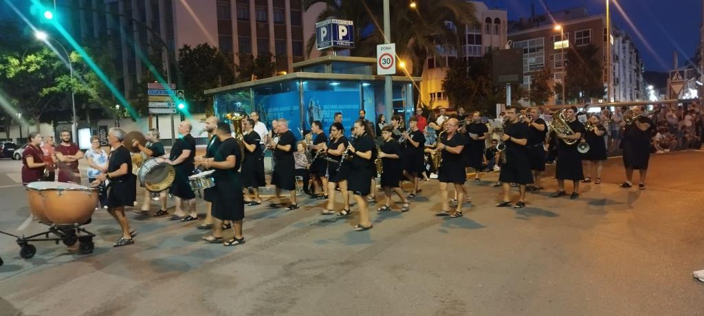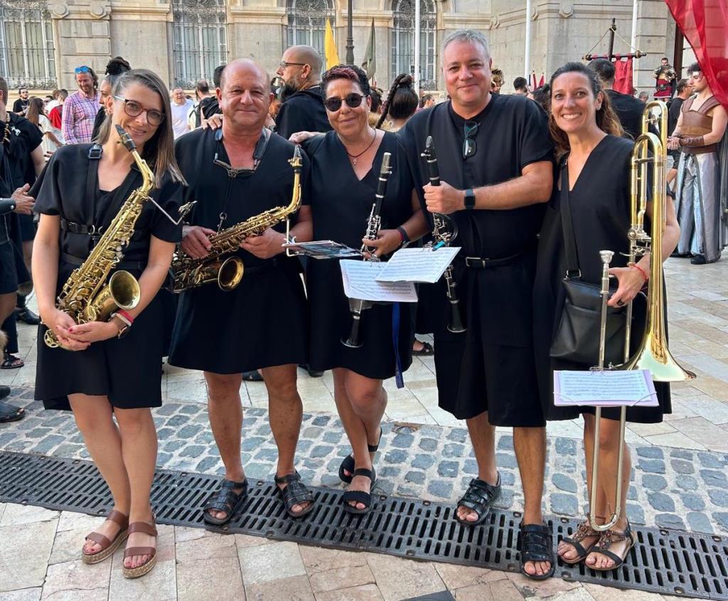 La Agrupación Musical 'Cartagena 1990' llevó a cabo un doble 'viaje en el tiempo' (II Guerra Púnica y Edad Media) el pasado sábado en el desfile general de Carhtagineses y Romanos, pues el grupo se dividió para acompañar a una comparsa de Moros y Cristianos de Santomera y para animar, luciendo túnicas de época, la marcha de Guerreros de Uxama.