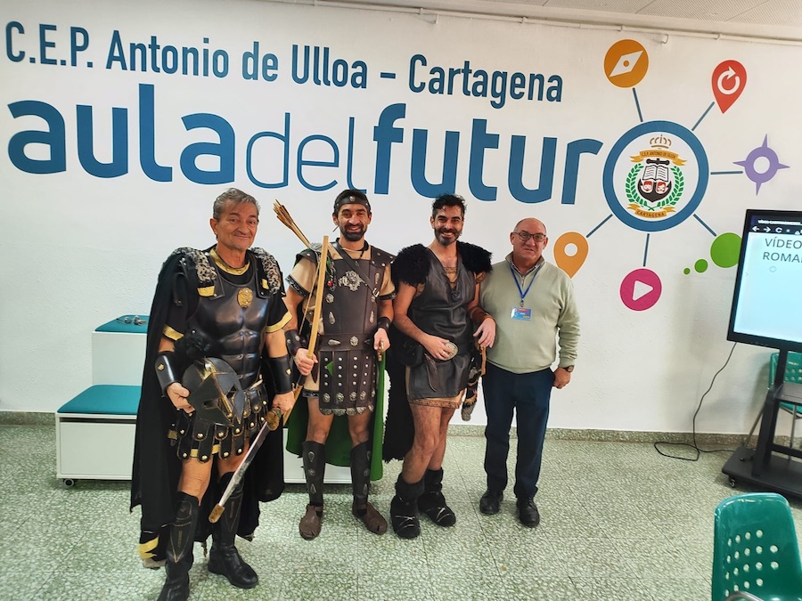 Leer más...Dos festeros púnicos y un legionario han visitado el colegio para dar a conocer la historia y las fiestas a docentes de varios colegios de España dentro del proyecto 'Aníbal en Europa'.