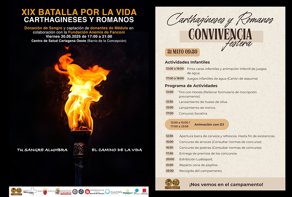 La décimo novena edición de la donación de sangre y captación de donantes de médula, además de tener lugar en el día anterior al inicio de las fiestas de Carthagineses y Romanos, también ha sido incluida en la 'Semana cultural del medio año festero', que acabará este sábado con la convivencia de tropas y legiones y que hasta entonces ofrece conferencias en el Teatro Romano, como la llevada a cabo por José Miguel Gallego Cañamero sobre la 'Via Scipionis'.