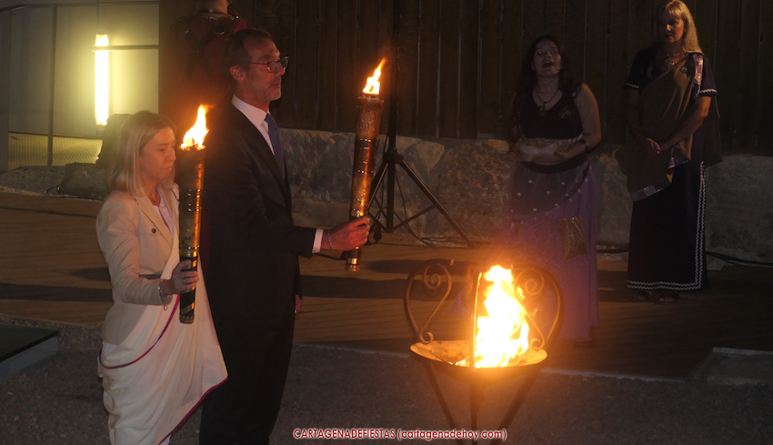El complejo industrial de Cartagena es un fiel aliado desde hace muchos años de las Fiestas de Carthagineses y Romanos en pos de que cada año vaya a más y atraiga a más visitantes. Esa vinculación también quedó patente ayer cuando el subdirector de Refinería, Luis Roque Dinis, junto a la gerente de Puerto de Culturas, Cristina Pérez, encendieron el fuego sagrado en el pebetero del Templo de Isis en el Foro Romano.