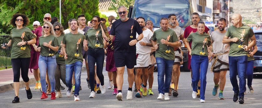 La llama de Carthagineses y Romanos que salió de Linares el pasado sábado ya está en el mar, tras embarcar en Águilas, y esta tarde se unirá a la que ha partido esta mañana desde Santomera.