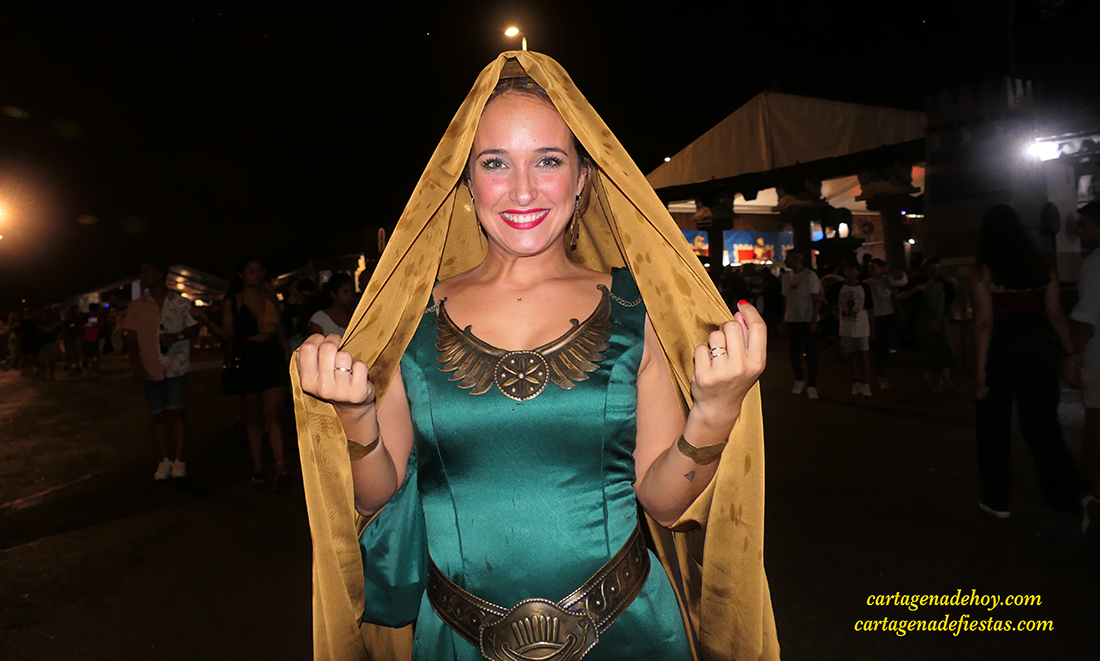 La lluvia ha estado de forma intermitente, y con distintas cantidad e intensidad, durante las últimas dos noches en el campamento de Carthagineses y Romanos, lo que generó la aparición de paraguas o buscar otros improvisados sistema de protección, como se observa en la foto a esta sacerdotisa de Baal-Hammon. Y al mal tiempo, bailes, como, por ejemplo, llevaron a cabo en Adoradores de Venus con la danza más festera.