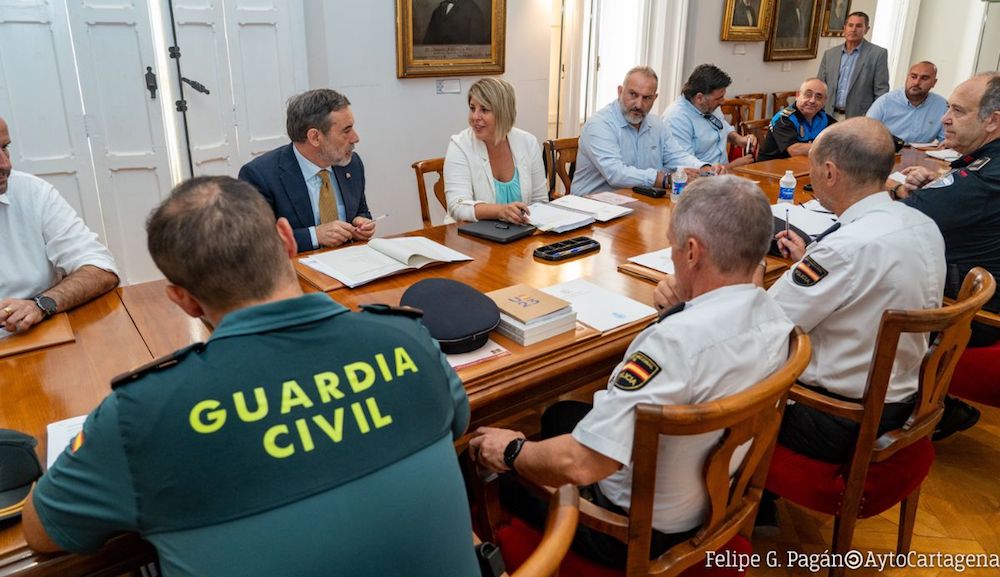 Las fiestas se celebrarán de forma segura gracias al dispositivo de vigilancia coordinado por el Ayuntamiento de Cartagena. La alcaldesa, Noelia Arroyo, ha presidido hoy la junta de seguridad, en la que se han abordado las necesidades del despliegue que se llevará a cabo del 15 al 24 de septiembre.