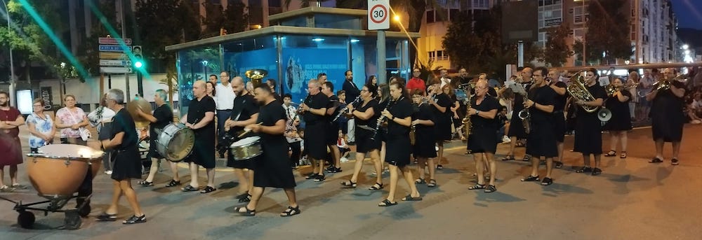 La Agrupación Musical 'Cartagena 1990' llevó a cabo un doble 'viaje en el tiempo' (II Guerra Púnica y Edad Media) el pasado sábado en el desfile general de Carhtagineses y Romanos, pues el grupo se dividió para acompañar a una comparsa de Moros y Cristianos de Santomera y para animar, luciendo túnicas de época, la marcha de Guerreros de Uxama.