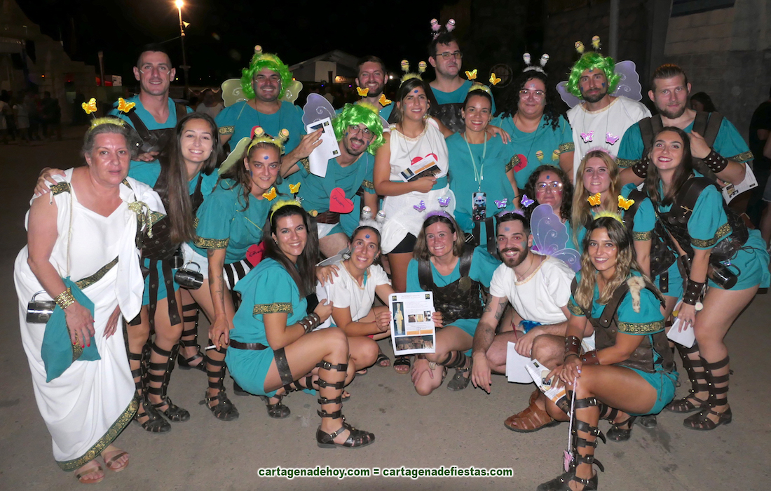 Guardia de Tanit celebró en la madrugada del jueves en su recinto del campamento de Carthagineses y Romanos sus tradicionales capturas de diosas romanas, pudiendo rescatarlas los grupos a los que pertenecen pagando con productos de higiene y de alimentación que tienen como destino una entidad solidaria, que este año ha sido la Casa Cuna de Cartagena, a donde ya se han llevado el botín, que pesaba unos cien kilos, como se observa con dos integrantes de la tropa carthaginesa, la ‘Gran dama de Carthago’, Isabel, y su consorte, Jesús.