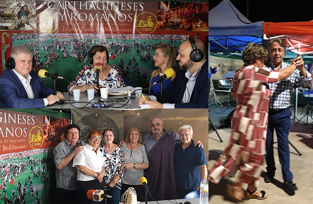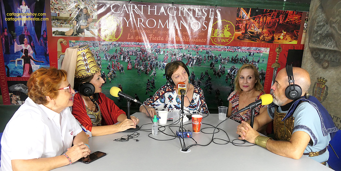 ‘Onda Cartagena’ está llevando un enorme despliegue dentro del campamento en las Fiestas del Carthagineses y Romanos, con emisiones en directo que han llegado a durar 5 horas (desde las 21 horas hasta las dos de la madrugada). Además de música en directo (algunas con bailes incluidos), por sus micrófonos han pasado el delegado del Gobierno, José Vélez (foto adjunta); el presidente de la Asamblea Regional, Alberto Castillo; el edil de Festejos, Juan Pedro Torralba; y, entre otros, numerosos personajes de las históricas fiestas.