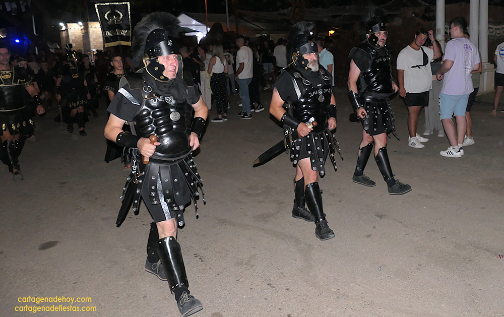 Componentes de la legión de la Guarida Pretoriana (’Cohors Lvcnsium Praetoria’) de las fiestas históricas de ‘Arde Lucus’ de Lugo, en Galicia, han llegado a Cartagena y se sumaron al desfile de bando carthaginés hacia Roma, pues tienen lazos establecidos con Lanceros Hoplitas Libios del bando púnico de Carthagineses y Romanos.