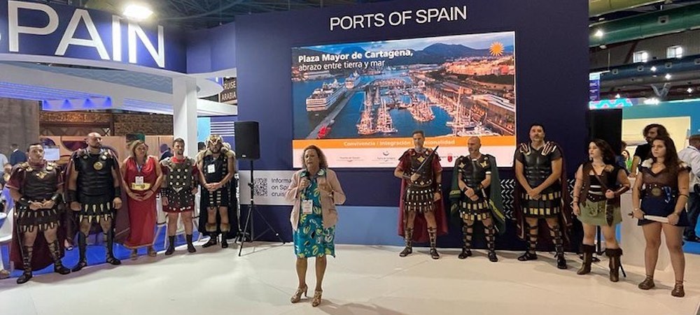 La Autoridad Portuaria de Cartagena, con su presidenta, Yolanda Muñoz, al frente, y una representación de las Fiestas de Carthagineses y Romanos han estado esta semana en el ‘Seatrade Cruise Med’, que durante dos jornadas ha reunido a compañías navieras más importantes, touroperadores, agentes de viajes, otros puertos de España y proveedores de servicios en el Palacio de Ferias y Congresos de la ciudad malagueña.