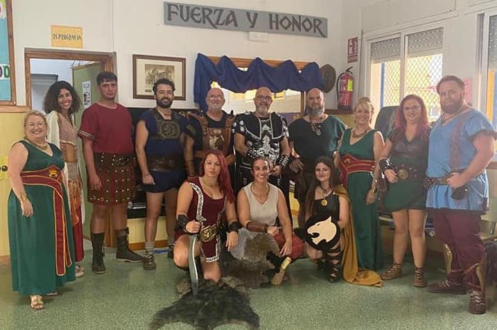 El estratega y una representación varias tropas carthaginesas han visitado el colegio Azorín de Molinos Marfagones para explica la base histórica de las fiestas y en qué consiste su popular celebración anual.