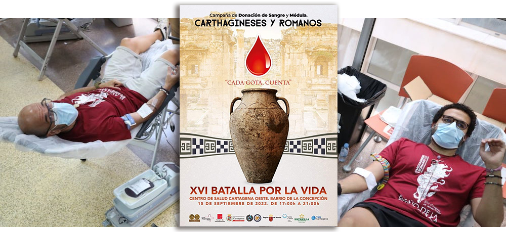La Federación de Tropas y Legiones y el Centro Regional de Hemodonación organizan hoy la XVI ‘Batalla por la vida de Carthagineses y Romanos bajo el lema ‘Cada gota cuenta’ en el centro de salud Cartagena Oeste de Barrio de la Concepción, que estará abierto para recibir a los donantes de 17 a 21 horas. El objetivo es alcanzar una cifra récord.