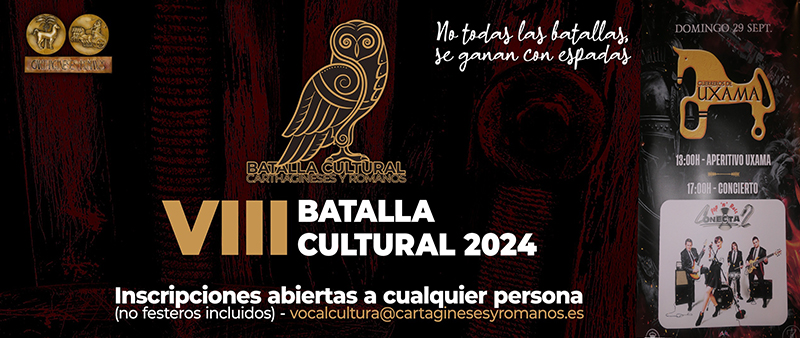 Más de cuatro mil personas protagonizarán esta tarde el gran desfile del 'Annus XXXV' de Carthagineses y Romanos, que llegarán a un campamento donde habrá concierto de bandas de música locales. El domingo es para la batalla cultural antes de que se apague el fuego sagrado y se lance un novedoso castillo de fuegos artificiales piromusical, en el que se anuncia que las explosiones irán acompasadas con música. Esa tarde habrá convivencia y algunos grupos de músicas en recintos del campamento festero.