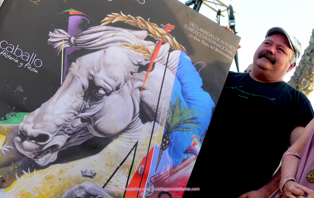 El caballo, que figura en los símbolos principales de ambos bandos, es el epicentro elegido por el internacional artista cartagenero para la imagen oficial del Annus XXXIII, la cual ha sido presentada en un campamento festero portuario que ha llenado la jornada de atracciones y que refleja la ganas de tropas y legiones por recuperar unas fiestas de septiembre en plenitud.