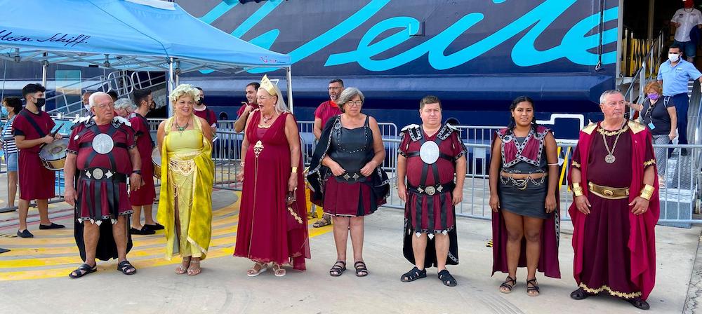 Con los buques 'Clio' (un barco de lujo) y 'Mein Schiff 3' (su primera escala en nuestra ciudad) son dieciséis los han que atracado en Cartagena este año desde la reactivación del turismo de cruceros el pasado mes de junio. Como es habitual, los dos barcos llegados hoy han sido recibidos por una representación de Carthagineses y Romanos.