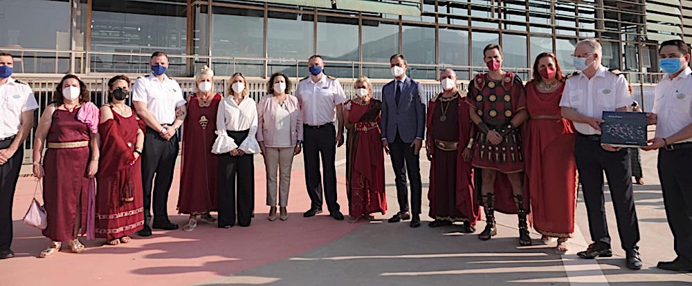Los buques 'Bolette' y 'Marella Explorer' han coincidido atracados en el puerto de Cartagena, donde han traído a cerca de mil turistas, quienes han sido recibidos por una representación de Carthagineses y Romanos, además de las autoridades.
