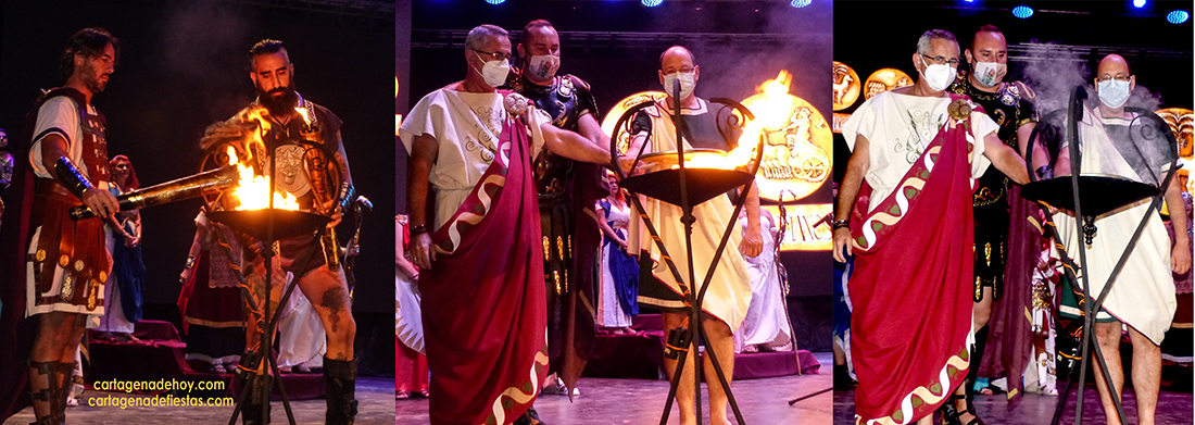 ⚔️ El fuego sagrado fue apagado por los representantes de La Aparecida y de La Unión, lugares donde se encendió, y la alcaldesa ha agradecido el buen comportamiento festero “contra viento, marea y pandemia”, regalando una obra de Pedro Cano