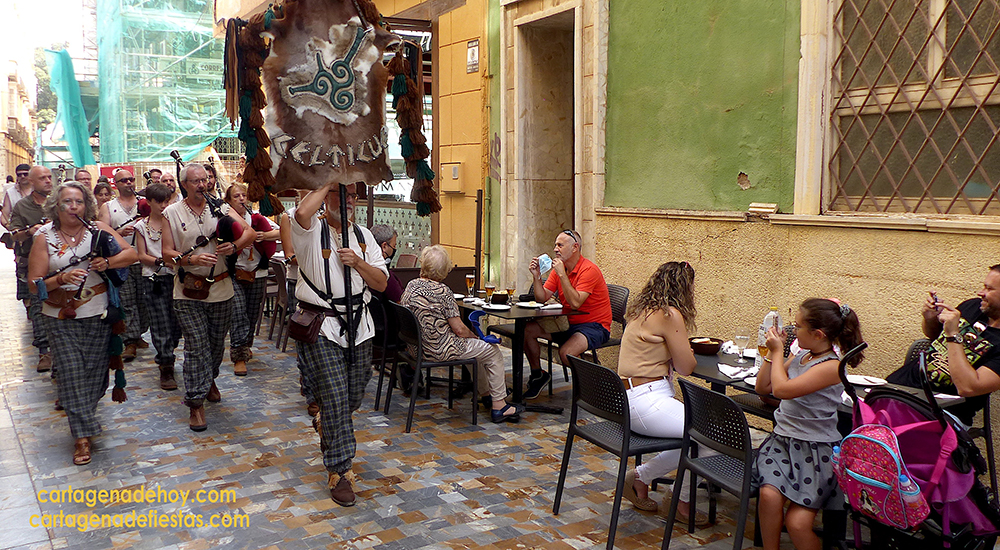 Penúltimo día de Carthagineses y Romanos que a las diez ya ofrece actividad con la bici-romana. Por la noche, el conciertazo en el Parque Torres y durante el día, animación en el casco urbano con los pasacalles de la banda Celticue (foto adjunta) y de grupos de festeros. Además, junto al Cartagonova continúan la feria de atracciones y el mercado de época, con apertura desde las 12 horas.