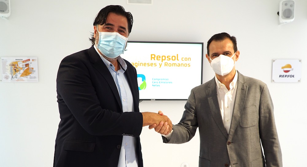 El director de la refinería de Repsol en Cartagena, Antonio Mestre, y el presidente de la Federación de Tropas y Legiones, José Antonio Meca, han firmado el convenio de colaboración con el que se renueva el apoyo de la refinería a las fiestas de Carthagineses y Romanos.