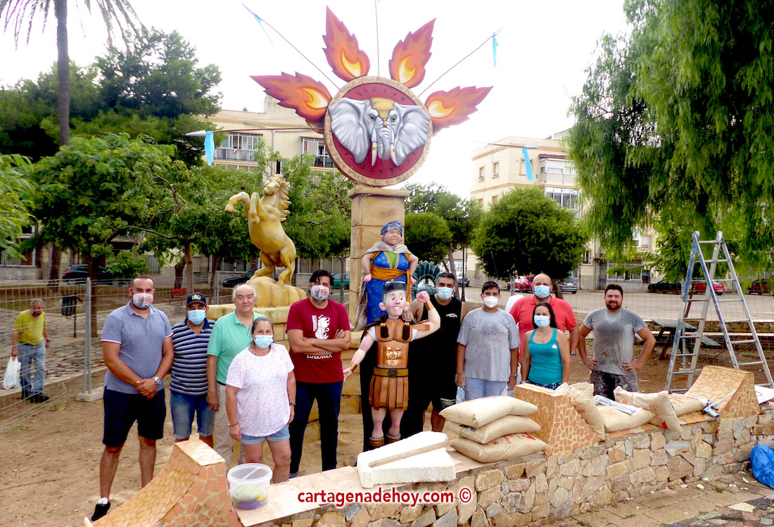 La asociación deportiva y cultura 'El Pinacho' ha llevado el montaje de una estructura en la que los personajes púnicos y romanos llevan el rostro de residentes de la villa. Arderá en la noche del fin de fiestas junto a la plaza de la Marina Española. GALERÍA DE FOTOS (pinchar aquí)