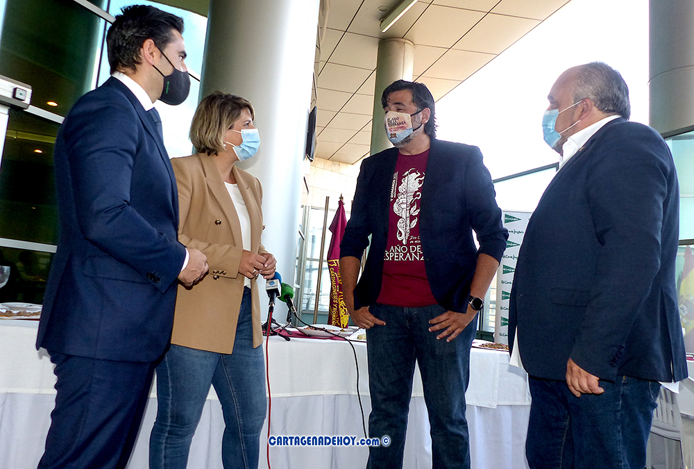 El presidente de Tropas y Legiones, José Antonio Meca, resalta que entre todos “vamos a poder sacar estos festejos a la calle con seguridad” y espera que todo salga bien “para que se puedan hacer más cosas en Cartagena”. La alcaldesa destaca la iniciativa festera, “pues es también un reto, ya que lo fácil era no haber hecho nada”. Hugo Lorente, nuevo director del El Corte Inglés, por su parte, pide a los medios de comunicación que le cuenten “al mundo que las fiestas de Carthagineses y Romanos van a comenzar”.