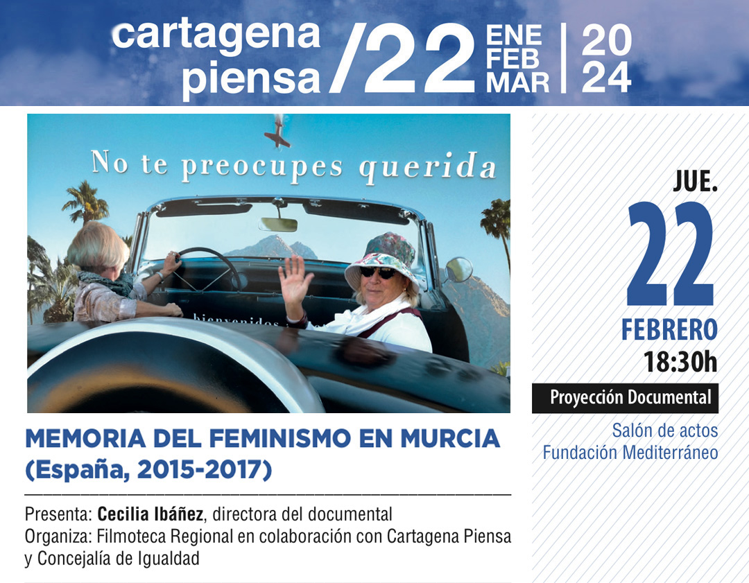 Memoria del Feminismo en Murcia (España, 2015-2017) se proyectará a las 18:30 horas, en la Fundación Mediterráneo, con entrada libre, en una colaboración entre Cartagena Piensa y la Filmoteca Regional.