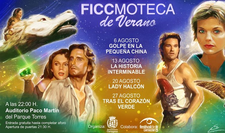 ' Golpe en la pequeña China', 'La historia interminable', 'Lady Halcón' y 'Tras el corazón verde' serán proyectadas por la FICCmoteca en la pantalla del escenario del auditorio Paco Martín en las noches de los martes de agosto, a partir de las 22 horas, con acceso gratuito para los espectadores y servicio de cantina.