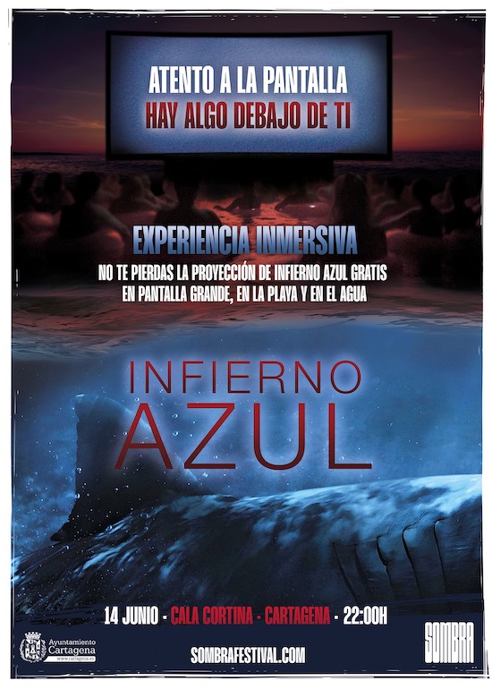 Cartagena programa este sábado 14 de junio una proyección inmersiva en aguas de Cala Cortina. La iniciativa, organizada por el Ayuntamiento y el Festival Sombra, ofrecerá la posibilidad de disfrutar de la película Infierno azul, en la que un tiburón blanco será protagonista, desde esta playa urbana. Los asistentes estarán acomodados sobre flotadores o desde la arena de la playa. La entrada es libre y desde el Ayuntamiento se ha coordinado un dispositivo de seguridad para el evento, que contará con aparcamientos disuasorios y un refuerzo del autobús a Cala Cortina.El pase arrancará a las 22:00 horas, por lo que se recomienda asistir con tiempo. Los interesados podrán disfrutar esta cinta de 2016 en la que verán un gran tiburón en las imágenes de la película, subidos sobre flotadores, en una actividad que combinará cine, naturaleza y adrenalina: una experiencia inmersiva en todos los sentidos. De esta manera, se trata de una proyección diferente con la que se rinde homenaje al término ‘blockbuster’ de verano. Se repartirán 150 flotadores, aunque los asistentes podrán llevar el suyo o disfrutar de la cinta desde la arena de la playa.