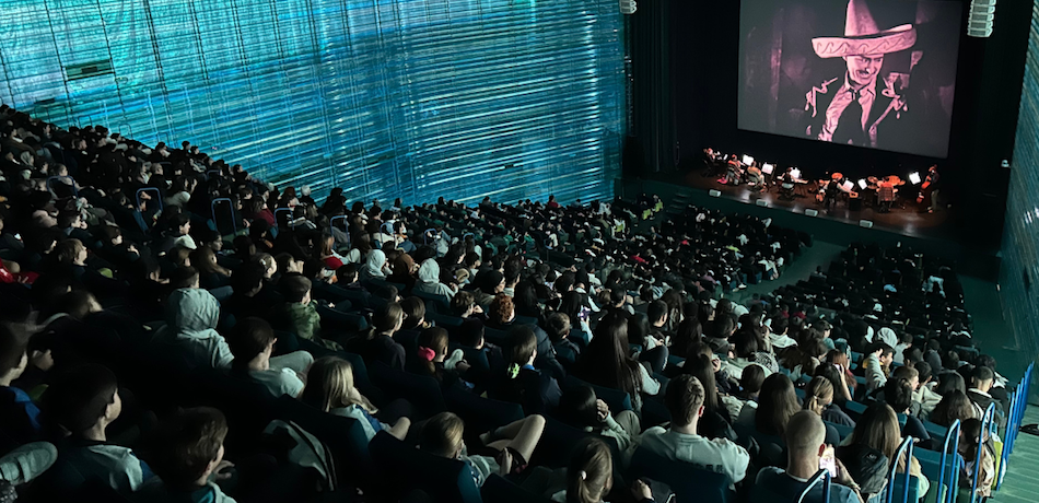 Cerca de tres mil alumnos de 36 centros educativos han asistido a la proyección de la película ‘Why worry?’, con la banda sonora de la 'Andrés Santos Station Band'.