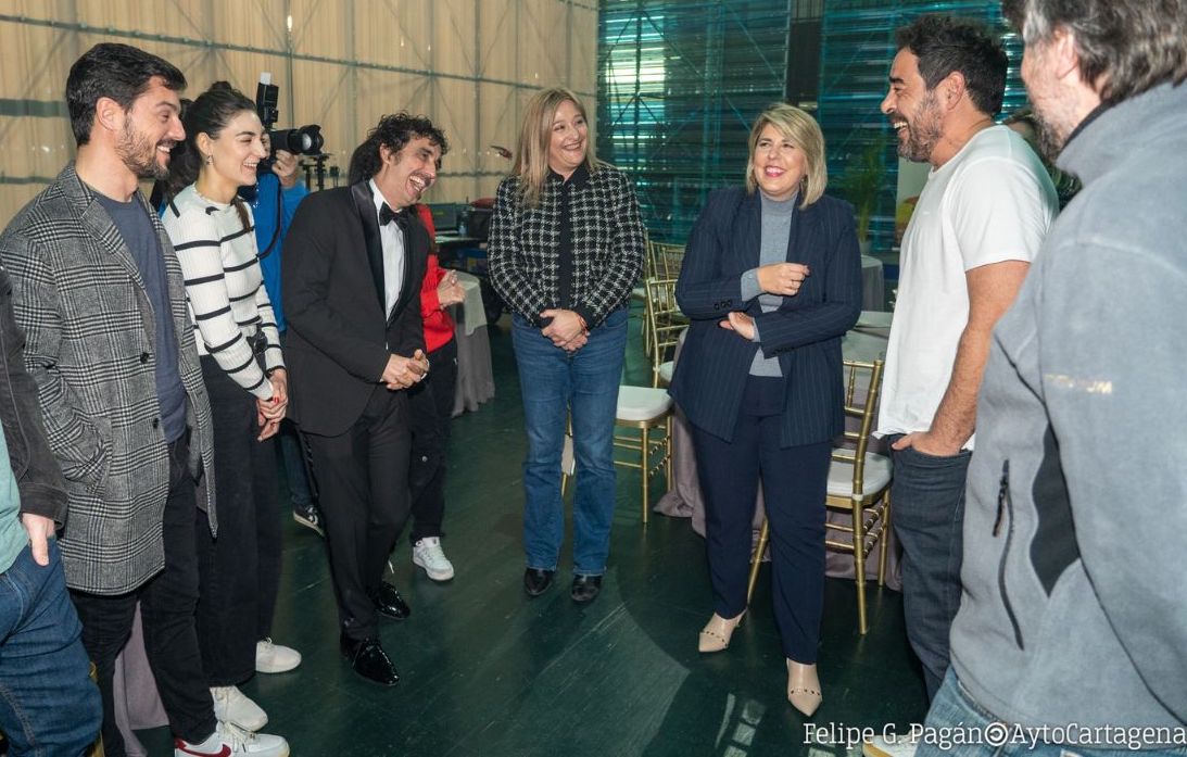 La película de humor, que está grabando escenas en la ciudad y en Calblanque, cuenta en su reparto con Alejo Sauras, Marta Hazas, Vanesa Romero, Canco Rodríguez y, entre otros, Pablo Chiapella, conocido por la serie 'La que se avecina', quien ha comentado en El Batel a la alcaldesa, Noelia Arroyo, cómo les ha "sorprendido la ciudad" y lo a gusto que se encuentran en ella.