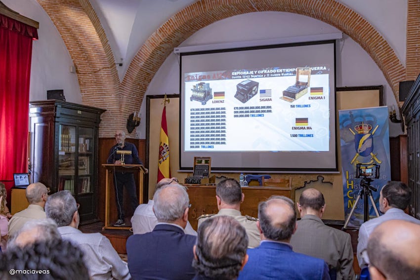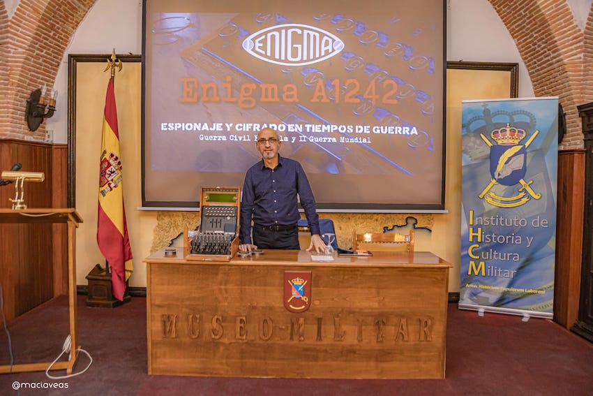 La conferencia, presentada por el teniente coronel Ernesto Terry, director del museo, fue impartida por Ángel Tarifa, auténtico experto en la materia. El ponente explicó que «Cartagena alberga desde hace unos años una pieza única en la historia de la criptografía militar: la máquina ‘Enigma A1242’, la más relevante de las que existen en España». Este ejemplar fue fabricado en Berlín en 1936 y tuvo un recorrido lleno de peripecias hasta su llegada a nuestra ciudad.