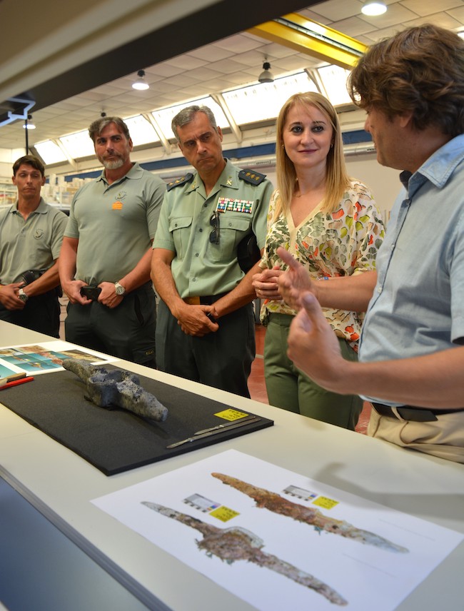 En la presentación del cepo a medios participaron representantes de las entidades implicadas en su recuperación: Rafael Sabio, director del Museo Nacional de Arqueología Subacuática ARQVA, Francisco Pulido Catalán, coronel jefe de la Guardia Civil en la Región de Murcia, así como la delegada del Gobierno en la Región de Murcia, Mariona Guevara Cava.