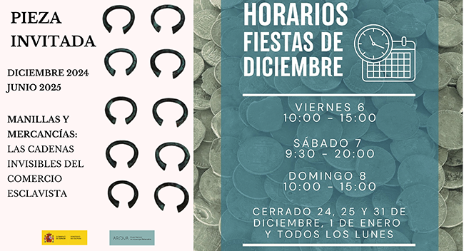 Los brazaletes de latón, que se usaban como monedas en el comercio esclavista, fueron localizados en el pecio de 'Iturritxiki, en Getaria. Las piezas pertenecen a Gordailua. Centro de Colecciones Patrimoniales de Guizpúcua. La exhibición temporal. que ya se puede visitar en el Museo Nacional de Arqueología Subacuática, se enmarca en el proyecto ‘Pieza invitada’ para la puesta en valor del patrimonio cultural subacuático.