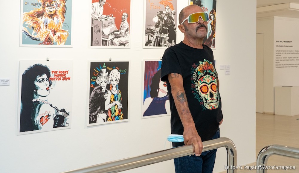 Casablanca, Terciopelo azul, Los Pájaros, Moby Dick... son grandes clásicos del cine mundial que han servido de inspiración al artista multidisciplinar para la muestra que se ha inaugurado en la sala cartagenera Domus del Pórtico, y que puede visitarse hasta el 10 de enero. Está compuesta por unas cuarenta obras con distintas técnicas como impresiones digitales, acuarela o acrílicos sobre distintas superficies.