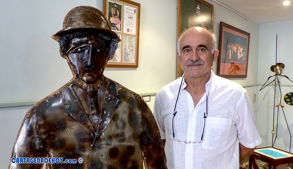 No es una hipótesis, es una realidad, como demuestra José Antonio López Palazón, una persona que transforma el reciclaje en arte. Otro ejemplo: la cara de Don Quijote es una pieza de una lámpara. La mayoría de nosotros no vemos en estos objetos lo que vislumbra este vecino de Barrio Peral, pero basta con acudir al Teatro Circo Apolo de El Algar y observar la exposición que luce en la entrada y pasillos de acceso al patio de butacas. También trabaja con nuevos metales y es autor, entre otras obras, de ‘El manillas’ dedicado a la petanca en La Magdalena.