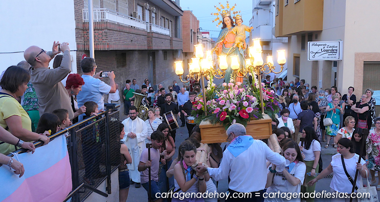 Cuando la imagen se recogía en su templo en 2019 nadie imaginaba que tardaría tres años en volver a verla salir en procesión por su barriada. Por ese motivo, existía una gran expectación, que se reflejó en el acompañamiento que tuvo durante una hora por las calles, como en la recogida, donde le cantaron la Salve popular cartagenera y la Unidad Musical Cartagonova le ofreció el himno de España.