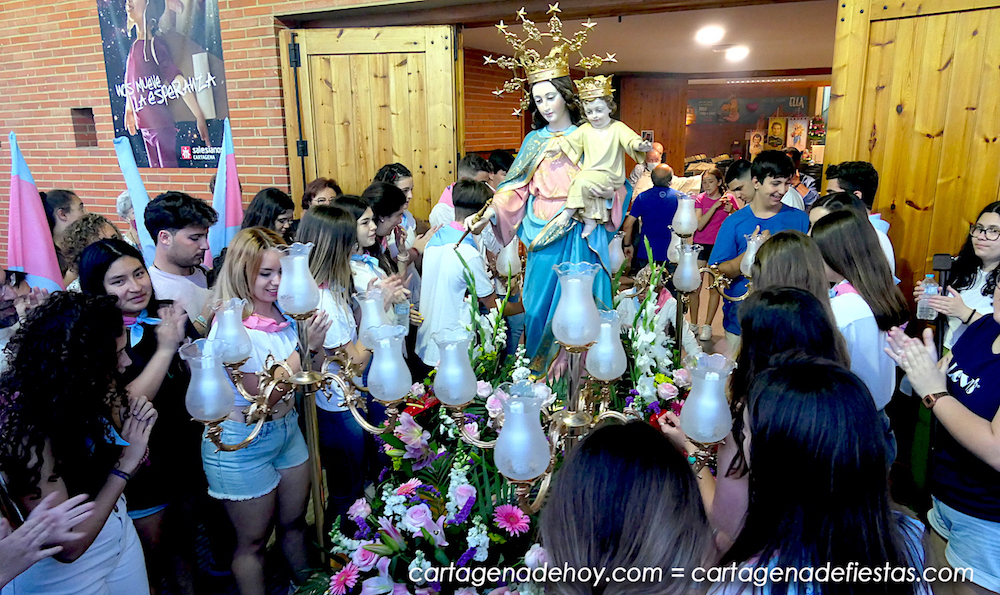 La siguiente cita del programa en su honor llegará el martes, festividad de María Auxiliadora, con ofrendas y distintas actividades de los diferentes ciclos de la comunidad educativa que culminarán a las siete de la tarde con una eucaristía en su parroquia, que será presidida por el vicario general de Cartagena, José Abellán.