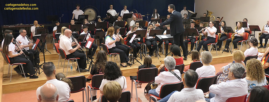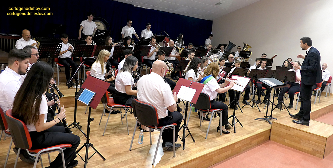 Las localidades de la escuela musical se completaron para disfrutar de las tres piezas ofrecidas por las agrupaciones musicales de La Unión y de Pozo Estrecho, bajo las batutas, respectivamente, de los directores Luis González Marín y de Héctor Jesús Hurtado Salazar.