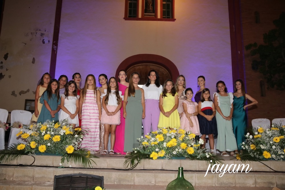 Novedad ha sido este año que ese honor para las fiestas de agosto lo tendrán 6 chicas adultas y 11 infantiles, las cuales llegaron a su presentación en el escenario de la plaza de la Iglesia acompañadas por la tuna.