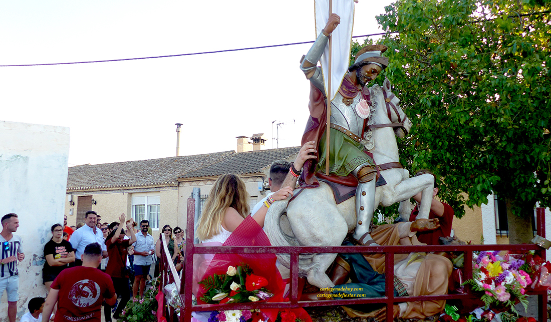 La asociación de vecinos y los colectivos de mayores y de amas de casa, con la colaboración de la junta vecinal municipal, consiguen recuperar los festejos patronales después del parón pandémico, pero no podrán llegar a los diez días como era habitual hasta 2019. Se celebrarán del 22 al 25 de este mes y la ubicación se traslada a la plaza del local social del pueblo. La foto adjunta corresponde a la procesión con el patrón en el año 2018.