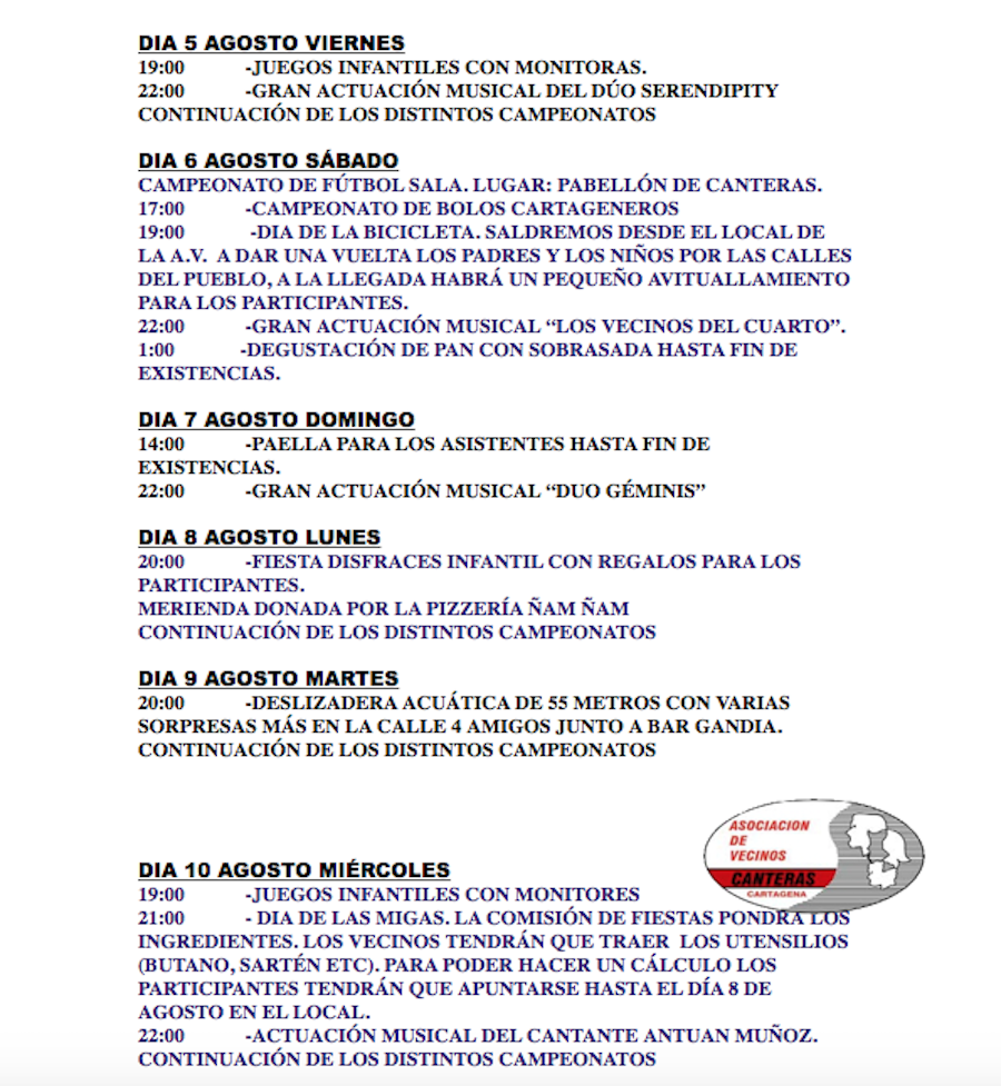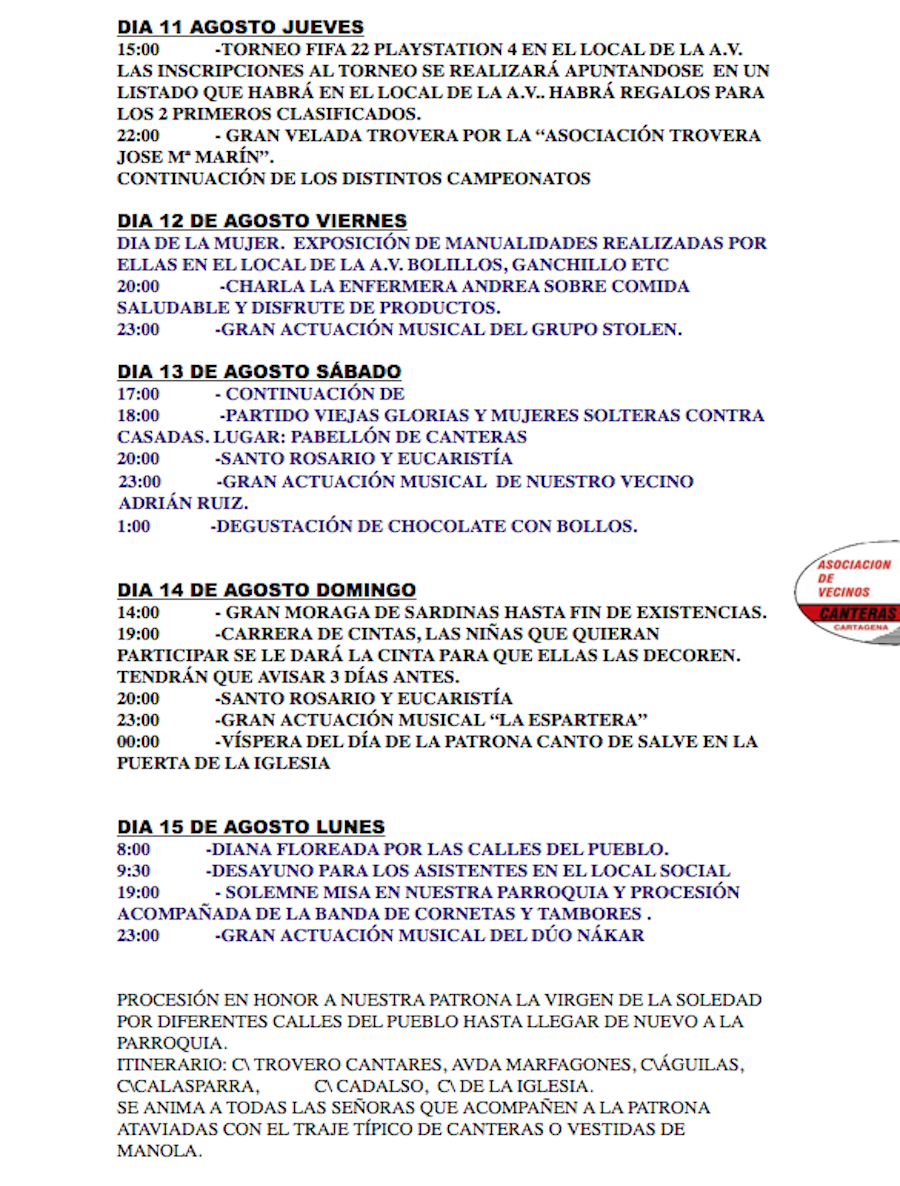 Canteras llena de actividades 16 días de fiestas a partir del domingo
