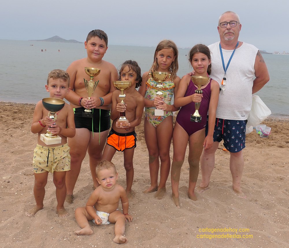 Los vencedores han sido el equipo formado por las chicas Estela y Clara y el integrado por los chavales Samuel, Antonino y Gonzalo. Destacar que, además de levantar la fortaleza en arena de playa, las primeras escribieron en su interior con conchas de almejas la palabra ‘SOS Mar Menor’, mientras que los chicos reflejaron el nombre del pueblo ‘Islas Menores’.