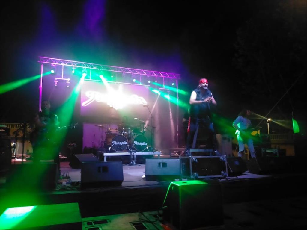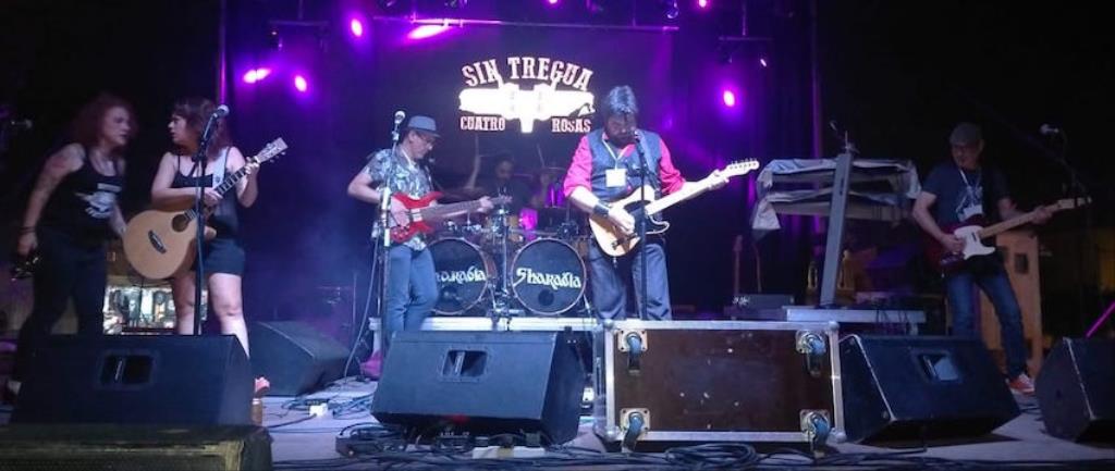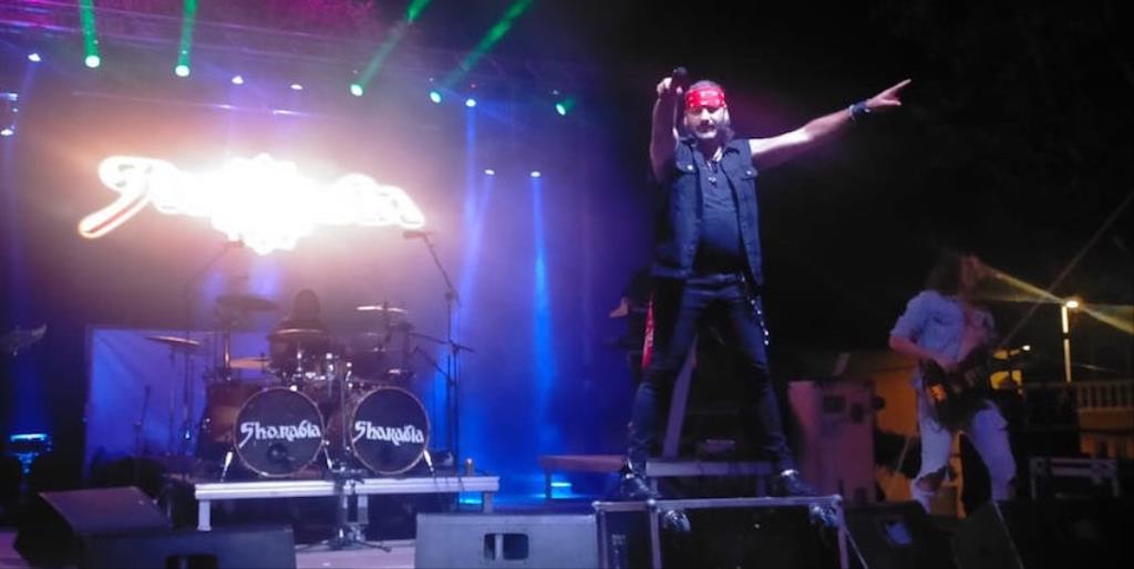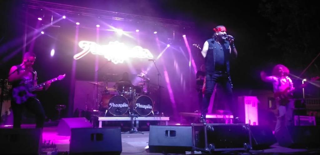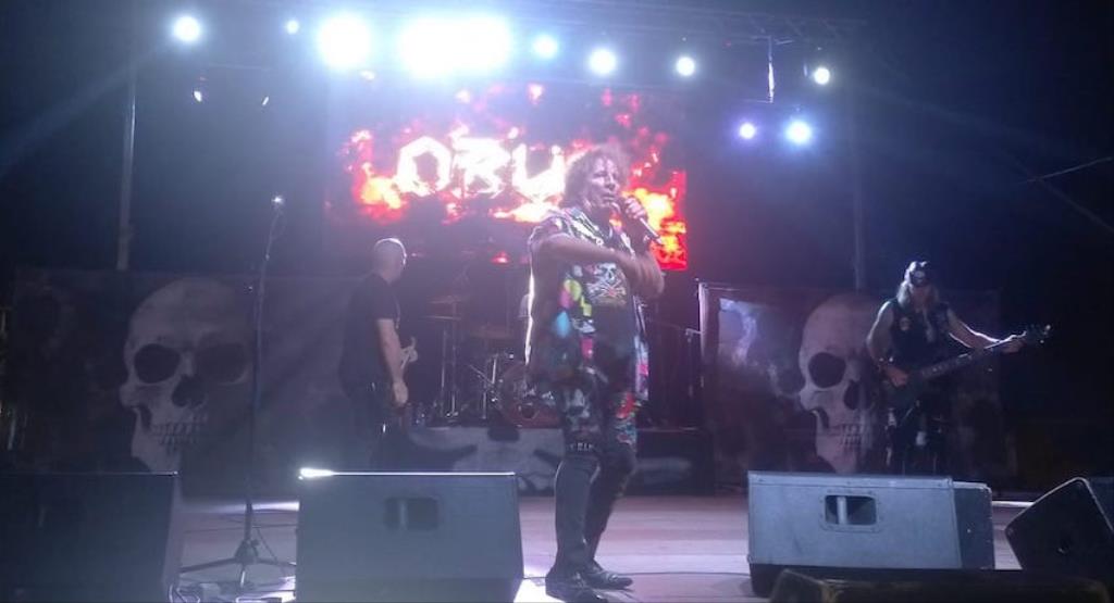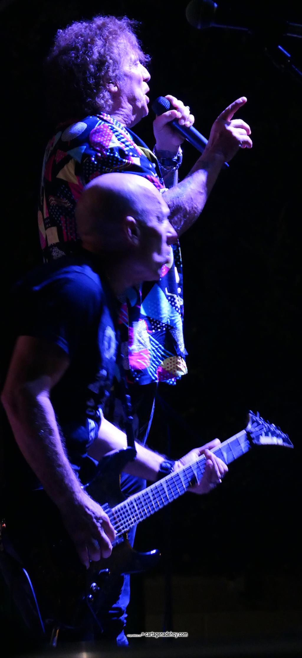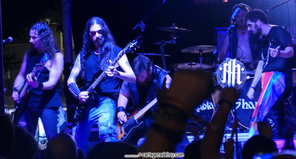 Vamos al capítulo musical, que comenzó sobre las diez y media de la noche y alcanzó las cuatro de una madrugada en la que, poco después, regresó la lluvia a Cartagena. Estupendas actuaciones de ‘Sin tregua’, ‘Sharabia’ y ‘Ángel Negro’, que también tienen a sus fieles conquistados merced a su buenhacer y calidad sonora, dentro de las variantes del rock que ofrecieron. Minutos antes de las dos de la madrugada apareció el cuarteto de ‘Obús’, siendo el último en subir al escenario un Fortu con camisa colorida, lo que contrastó en un ambiente donde la mayoría lucían las tradicionales camisetas negras. Comenzó con “Necesito más” y no faltó en su repertorio el súperconocido ‘Va a estallar el obús’ ni el ‘Dinero, dinero’ o el ‘Que te jodan’. Maestro sobre las tablas, fue puntal en mantener el júbilo entre el público. “¡¿Dónde estamos?!”, preguntaba a gritos. Unos decían que en Cartagena y otros que en Vista Alegre. Pues no… “¡Estamos en un concierto de rock…, arriba las manos!”.