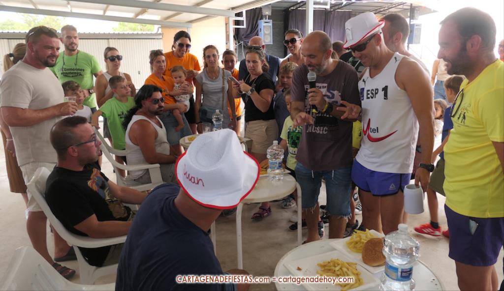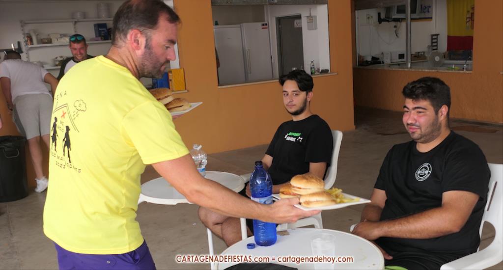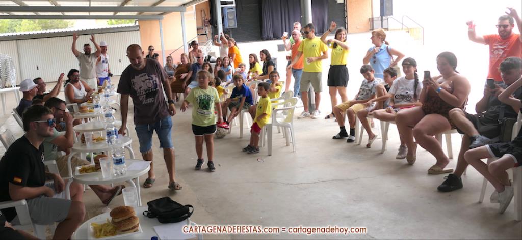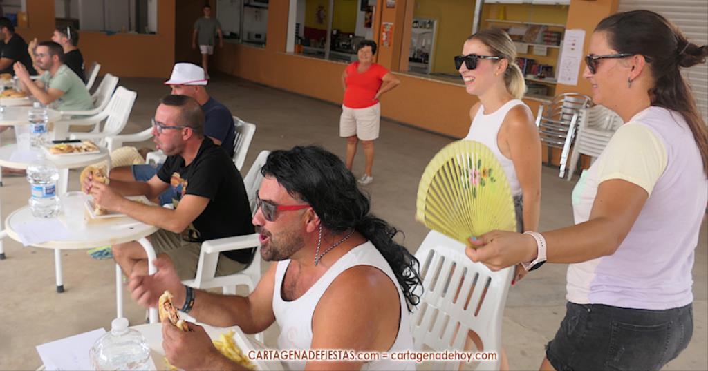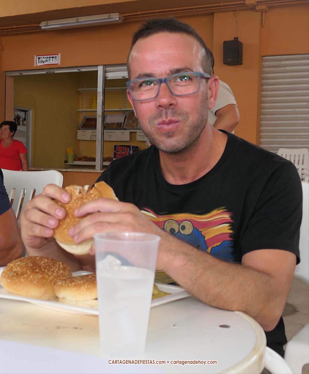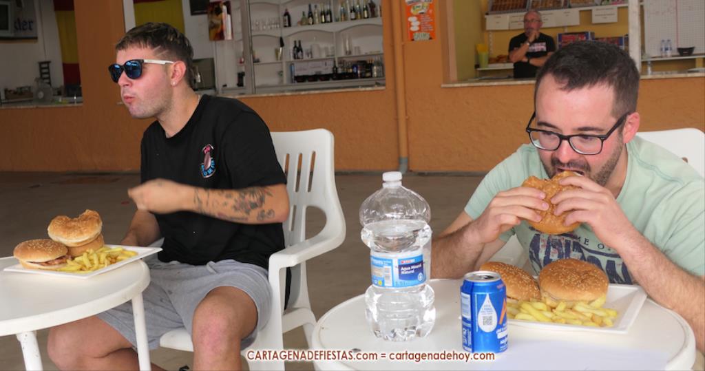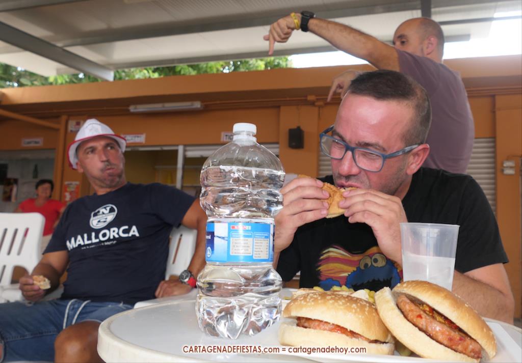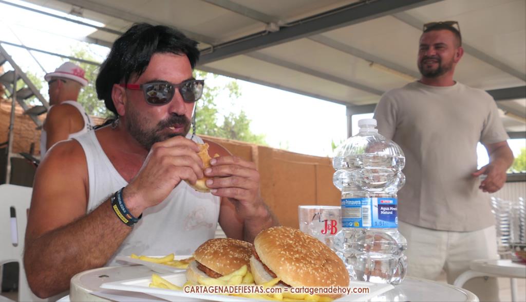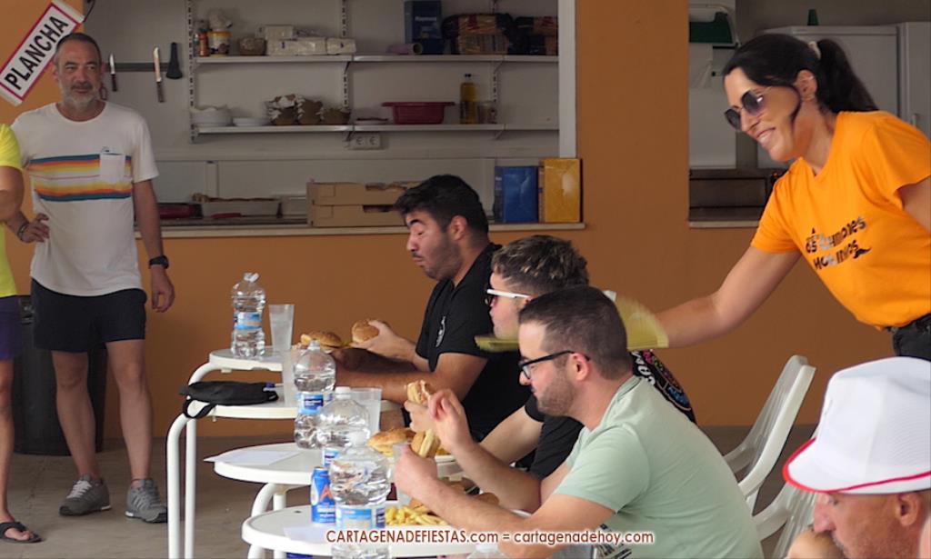 Reseñar también los ánimos de las peñas a los participantes, incluido el abanicar a algunos para facilitar la ingesta de hamburguesas.