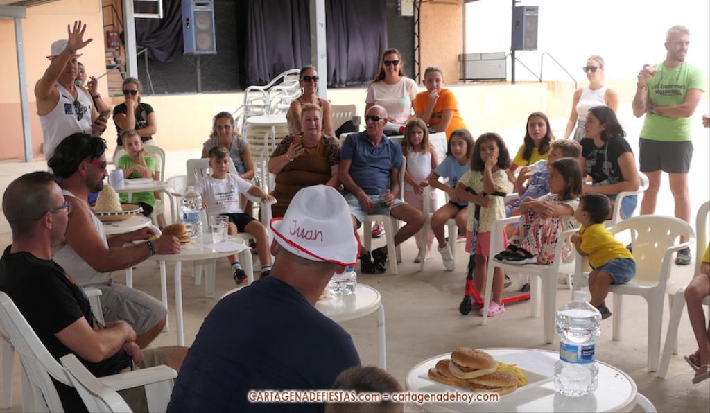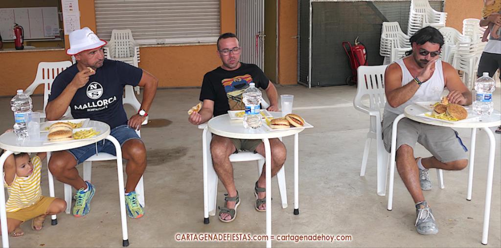 Damián, Chanete y Juan ocuparon los primeros puestos del podio del novedoso y simpático concurso de 'glotones' de las fiestas tras comerse tres hamburguesas picantes cada uno en 10 minutos, resolviendo el concurso el número de patatas que dejaron en el plato cada uno.